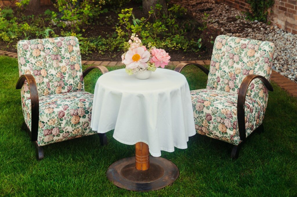 V cene 80 EUR + DPH máte k dispozícii vintage 4 kresielka s romantickým kvetinovým vzorom a dva biele vintage stolíky. Odporúčame na dotvorenie “dámskeho kútiku” napr. k tematickému gin baru alebo Aperol baru. V “Strednom” a “Veľkom balíku” sú tieto kresielka už zahrnuté – preto vám postačí pre vytvorenie takéhoto dámskeho kútiku doobjednať iba dva biele stolíky v cene 20 EUR/ks.